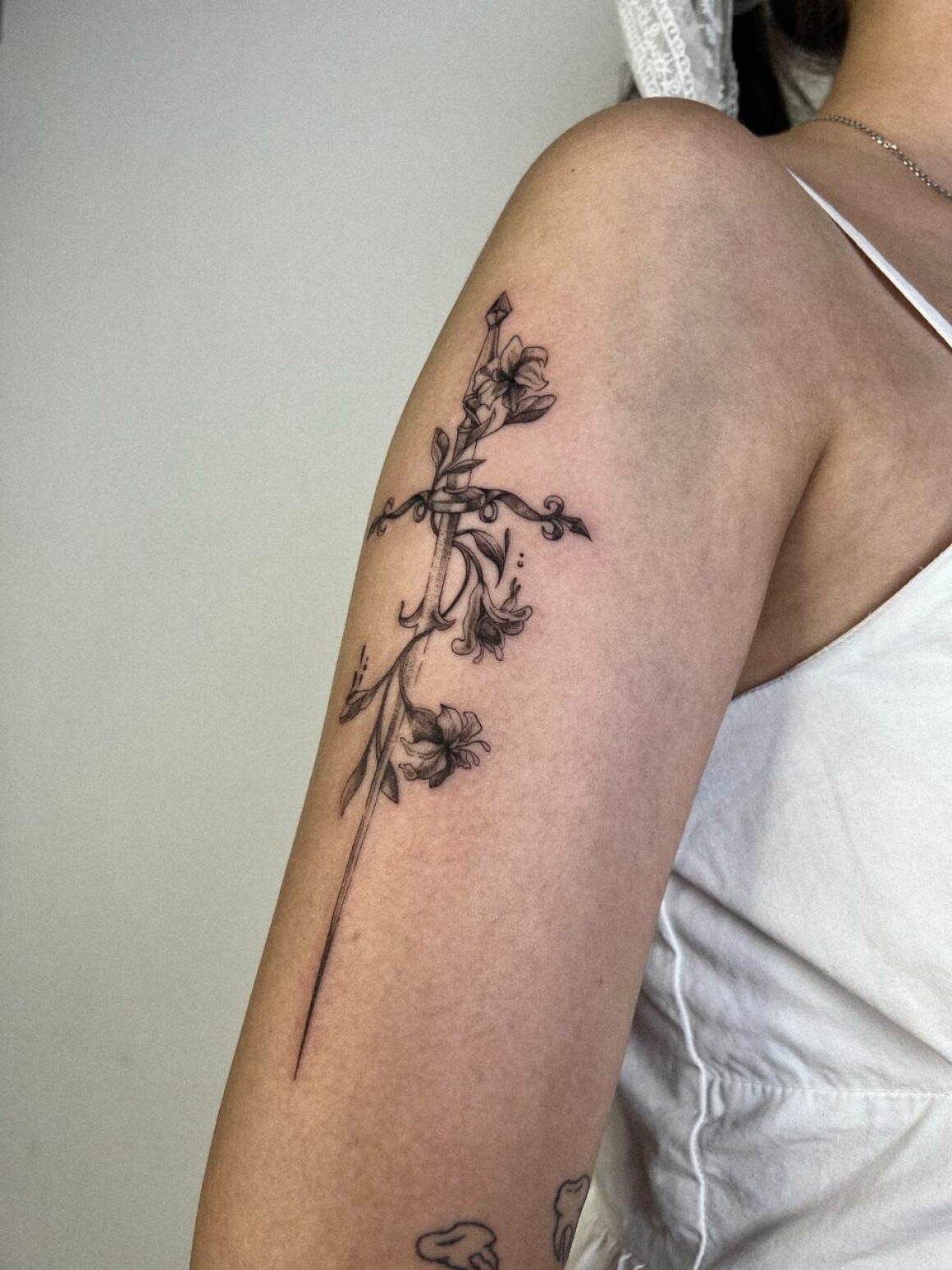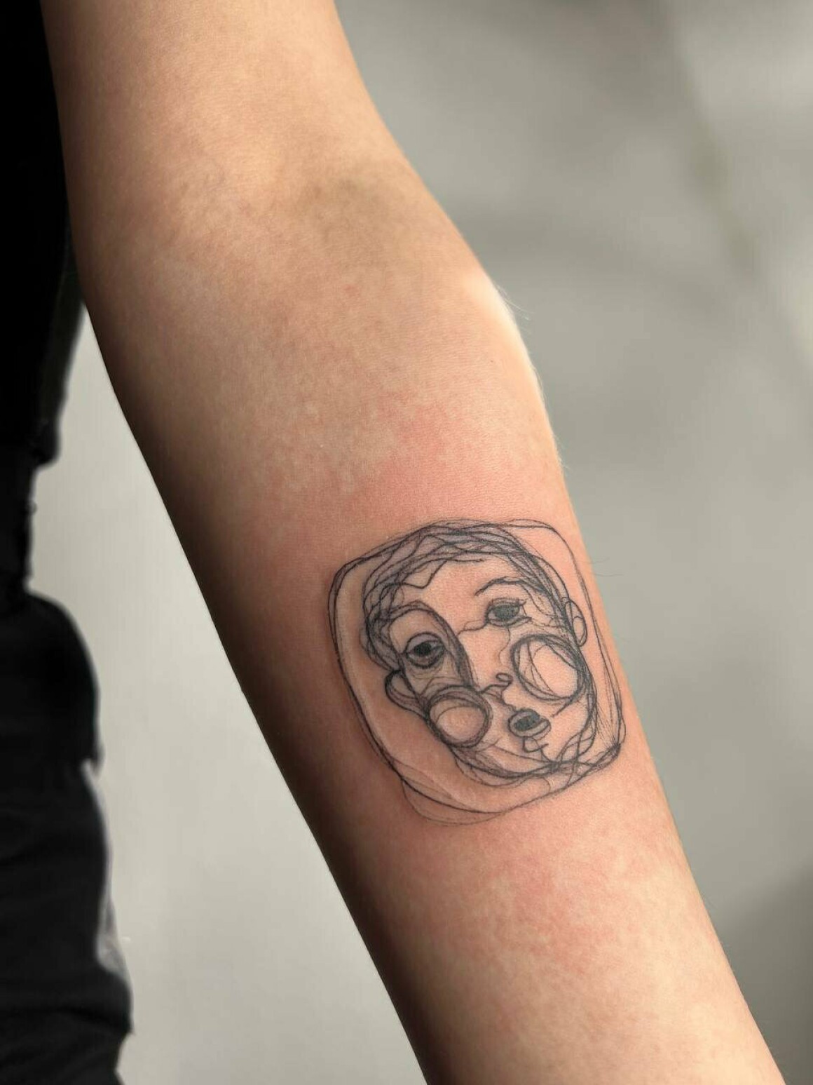 В день сеанса примерим эскиз на тело и посмотрим, как он выглядит вживую, а после начнем сеанс.